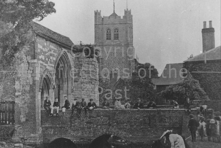 The ruins of the Abbey Gateway. The entrance to the monastic grounds which was walled round. This picture c1910. Now part of the Abbey Gardens.