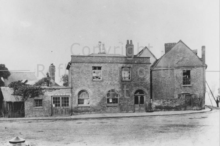 Old buildings on the Town Hall site. L-R: National Girl's School, Fire Engine Station, Police and Reading Rooms, and the East end of the first Leverton School. All were demolished at the beginning of the 20th century. This picture c1902.