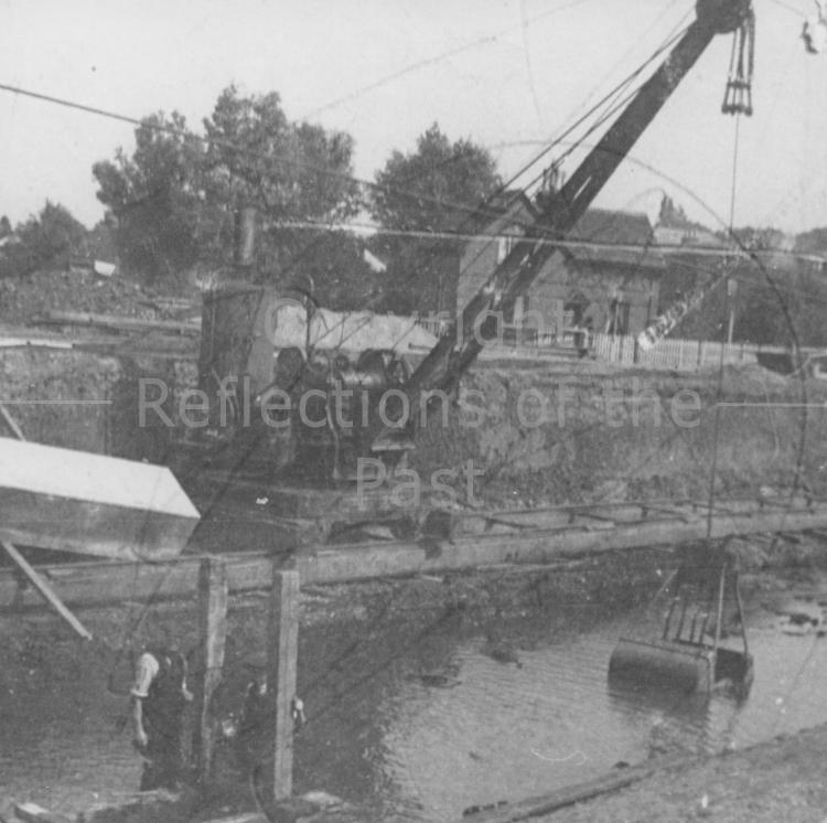 Building the new lock on the North side of the Lea Bridge, in the Lea Navigational Canal. This exercise lowered the height of the water under the bridge.