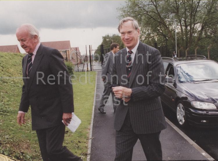 Lord Braybrook (left) with the Duke of Gloucester at the entrance of the Royal Gunpowder Mills to perform the official opening ceremony. 16th May 2001.