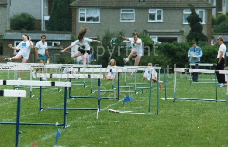 Girls Hurdle Race, with Mr Wyre and Mr Harber in the background. Date and further details needed.
