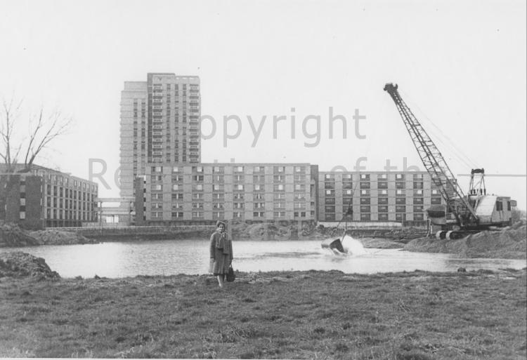 Gravel winning on Waltham Marshes with the Holdbrook tower block and flats in the background. This picture c1970. |