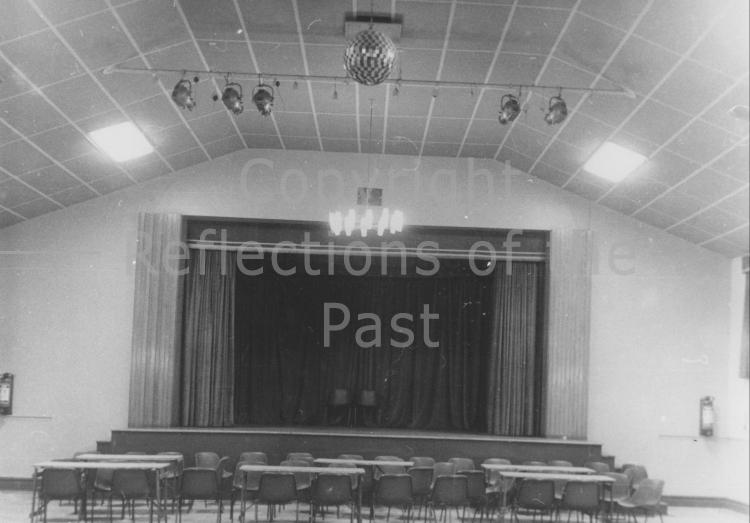 A view inside Waltham Abbey Town Hall looking towards the stage. This picture taken around 1980.